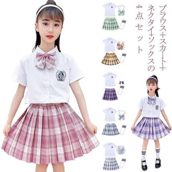 全15色 入学式 スーツ キッズ 女の子 スーツセット 4点セット オシャレ スクール制服 半袖 上下セット 入学式 スーツ 子供服 女子制服 スクー