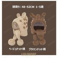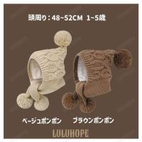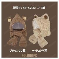 キッズ フードマフラー 耳あて帽子 一体 女の子 男の子 冬 ニット帽 保育園 防寒 くま耳 ポンポン ベージュ ブラウン 冬物 ベビー帽子萌え