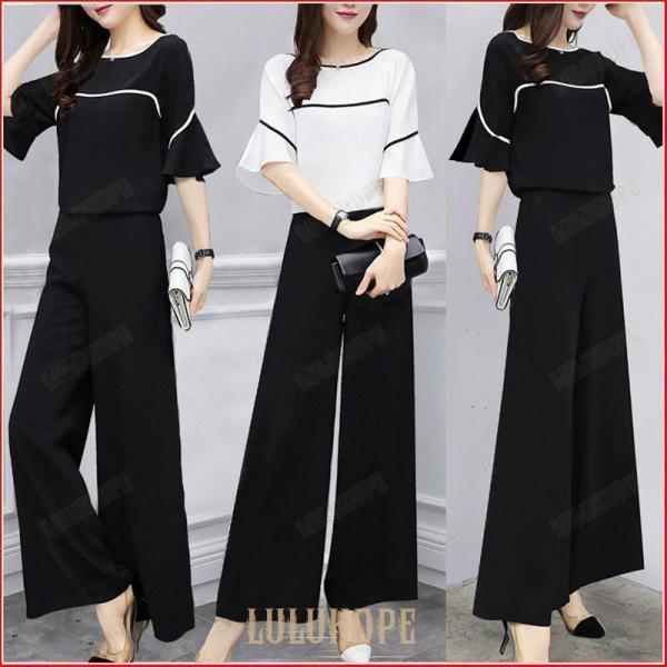 【特価】セットアップ パンツスーツ パンツドレス レディース 結婚式 大人 夏 シフォン 大きいサイズ ガッチョパッツ ワイドパンツ 半袖 フレア