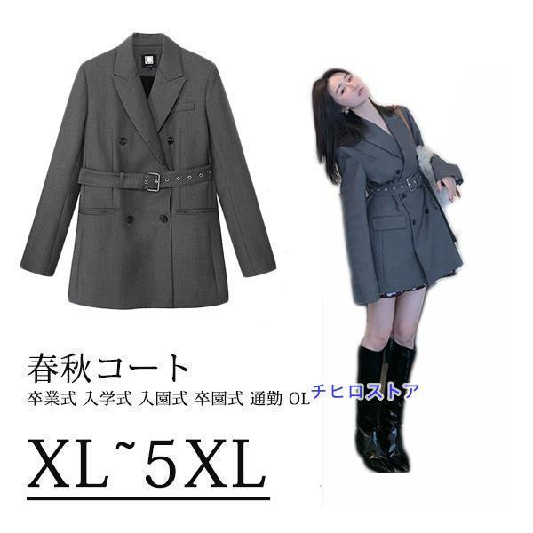大きいサイズ スーツ レディース フォーマル ジャケット ビジネス ベルト付 春秋コート 長袖 韓国 卒業式 入学式 入園式 卒園式 通勤 OL 女性 仕事結婚式 おしゃれ スーツコート シンプル グレー XL/2XL/3XL/4XL/5XL dg071f4f4c6