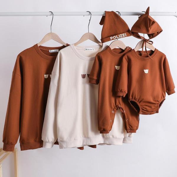 親子コーデ 赤ちゃん 家族写真 お揃いコーデ 親子ペアルック ベビー トレーナー カバーオール ロンパース 長袖 親子お揃い 春秋冬 子供服 お兄弟