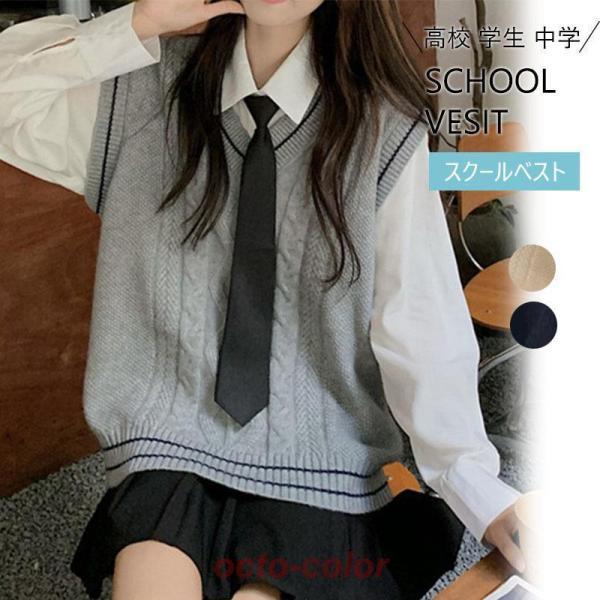 【特価】ライン入り ニット Vネック スクール 女子 学生 制服 ニット スクール セーター ノースリーブ 春 夏 秋 冬 JK 通学 高校生