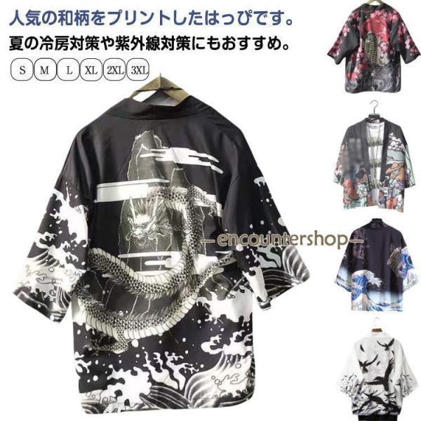 【値下げ】法被 ハッピ 七分袖 羽織り 甚平 鶴柄 大人 レディース メンズ ユニセックス サマーカーディガン アウター お祭り はっぷ 半纏 はんてん イベン