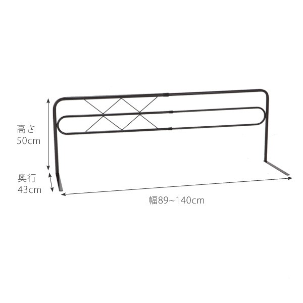 スライド式ベッドガード 布団ズレ防止 伸縮式のベッドフェンス G型スライド式で長さ調節可能!布団のズレ落ち防止に!■サイズ: 幅89〜140×奥行43×高さ50cm■主な材質: ハンマートン粉体塗装 直径2.22cm■カラー: ブラウン・アイボリー■仕様: 組立家具■製造国: 日本製 ※本商品に全体重をかけて寝起きすると大変危険ですので絶対におやめ下さい。