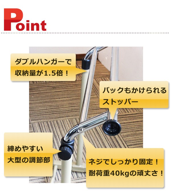 クローゼットハンガーラック 耐荷重40kg 約12着収納可能 パイプハンガー 押入れハンガー
