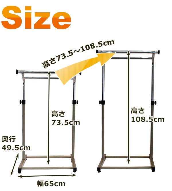 幅65×奥行49.5×高さ73.5〜108.5cm
