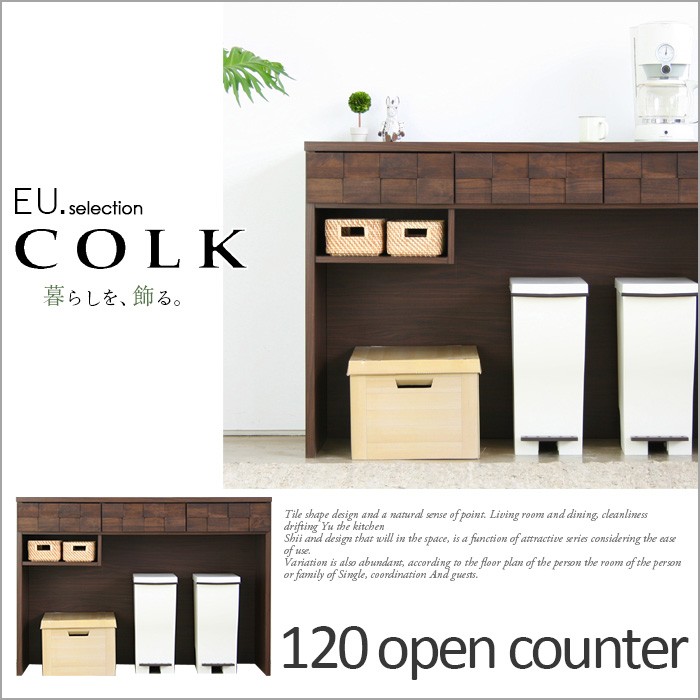 | 大きめサイズのオープンキッチンカウンター。天板には家電や食器を置いたり、作業台としてもお使い頂けます。(引き出し3杯/レール付き)ダストボックスをオープンスペースへ収納すると、お部屋がすっきり片付きます。またオープンスペースにある小さな棚には、資源ごみの袋などの収納に。 | |