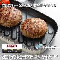 ・波形プレートなので余分な脂が落ちてヘルシーです。脂は焼き面の凸部のゆるい傾斜で余分な脂を落とし、凹部の傾斜で斜め奥側へ流れていきます。
