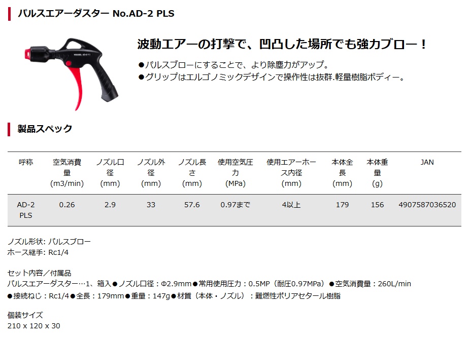 ベッセル No.AD-2 PLS パルスエアーダスター ノズル機能パルスブロー VESSEL 036520 小型便 '