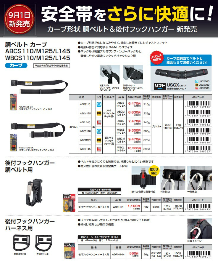新規格 タジマ 後付フックハンガー 胴ベルト用 ADFH-D ベルトを抜かなくても装着可能 製品重量33g TAJIMA TJMデザイン 169495 '