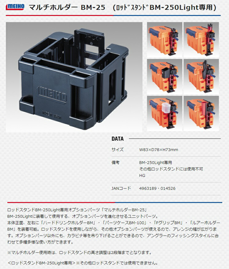 メイホウ マルチホルダー BM-25 バケットマウス専用 ロッドスタンドBM-250Light専用 オプションパーツ サイズW83xD78xH73mm メイホー MEIHO 在庫