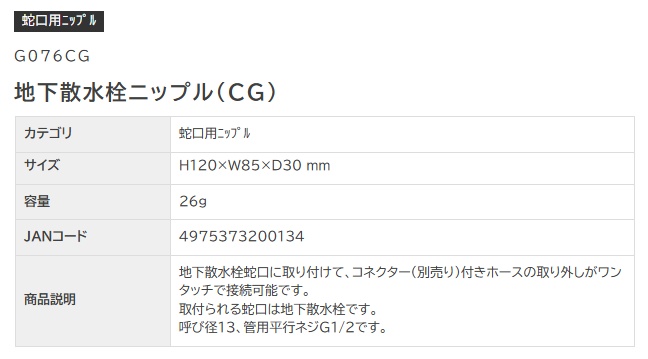 地下散水栓ニップル(CG)
