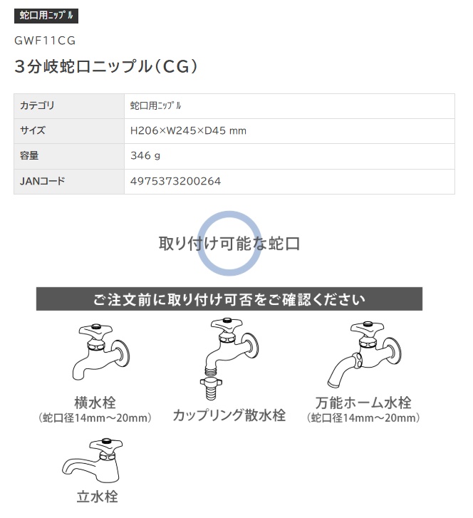 タカギ GWF11CG 3分岐蛇口ニップル(CG) TAKAGI 200264 小型便 '