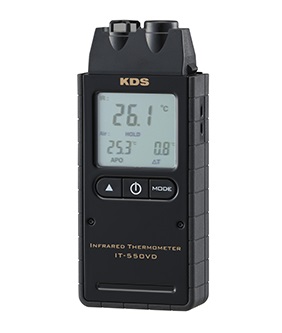 KDS 赤外線放射温度計550VD IT-550VD 外径サイズ50x116.6x20.6mm 重さ128g PSC適合品 測定範囲-30℃〜550℃ 周囲環境温度測定機能付 可変式ハイエンドモデル 。