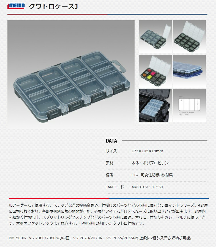 メイホウ クワトロケースJ サイズ175x105x18mm 可変仕切板8枚付属 メイホー MEIHO Fishing 小型便 在庫