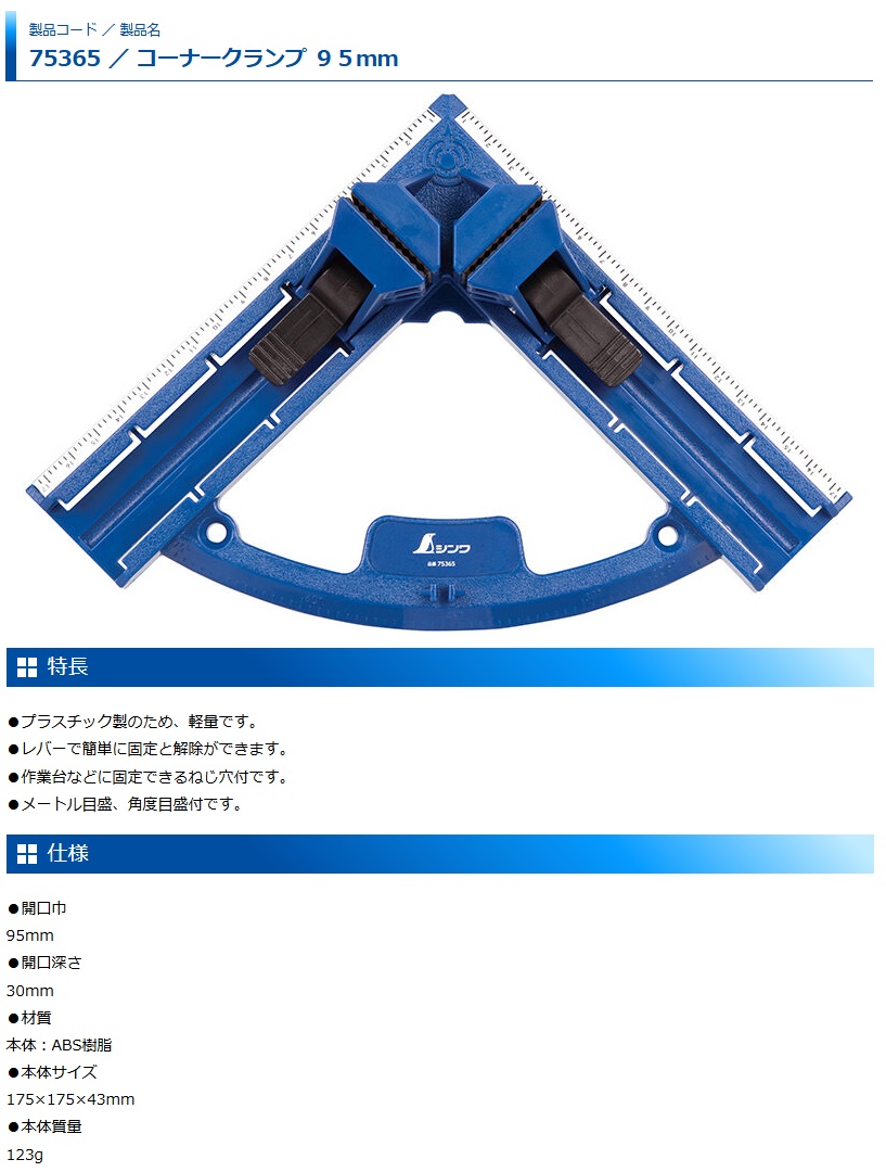 シンワ 75365 コーナークランプ95mm 小型便 。