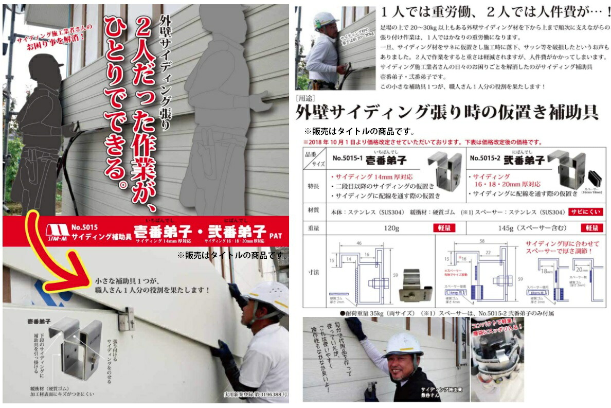 スターエム サイディング補助具 壱番弟子 5015-1 サビにくい コンパクト 軽量120g サイディング14mm厚対応 いちばんでし STAR-M 小型便 。