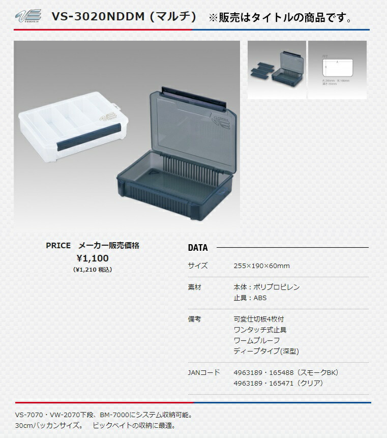 メイホウ タックルボックス 明邦化学 ツールケース マルチ VS-3020NDDM クリア 可変仕切板4枚付 ディープタイプ メイホー MEIHO バーサス VERSUS 在庫