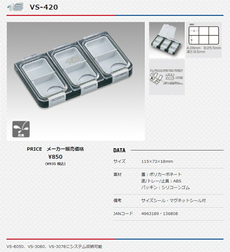 メイホウ 明邦化学 小物ケース VS-420 サイズシール・マグネットシール付 サイズ115x73x18mm メイホー MEIHO ネコポス可 在庫