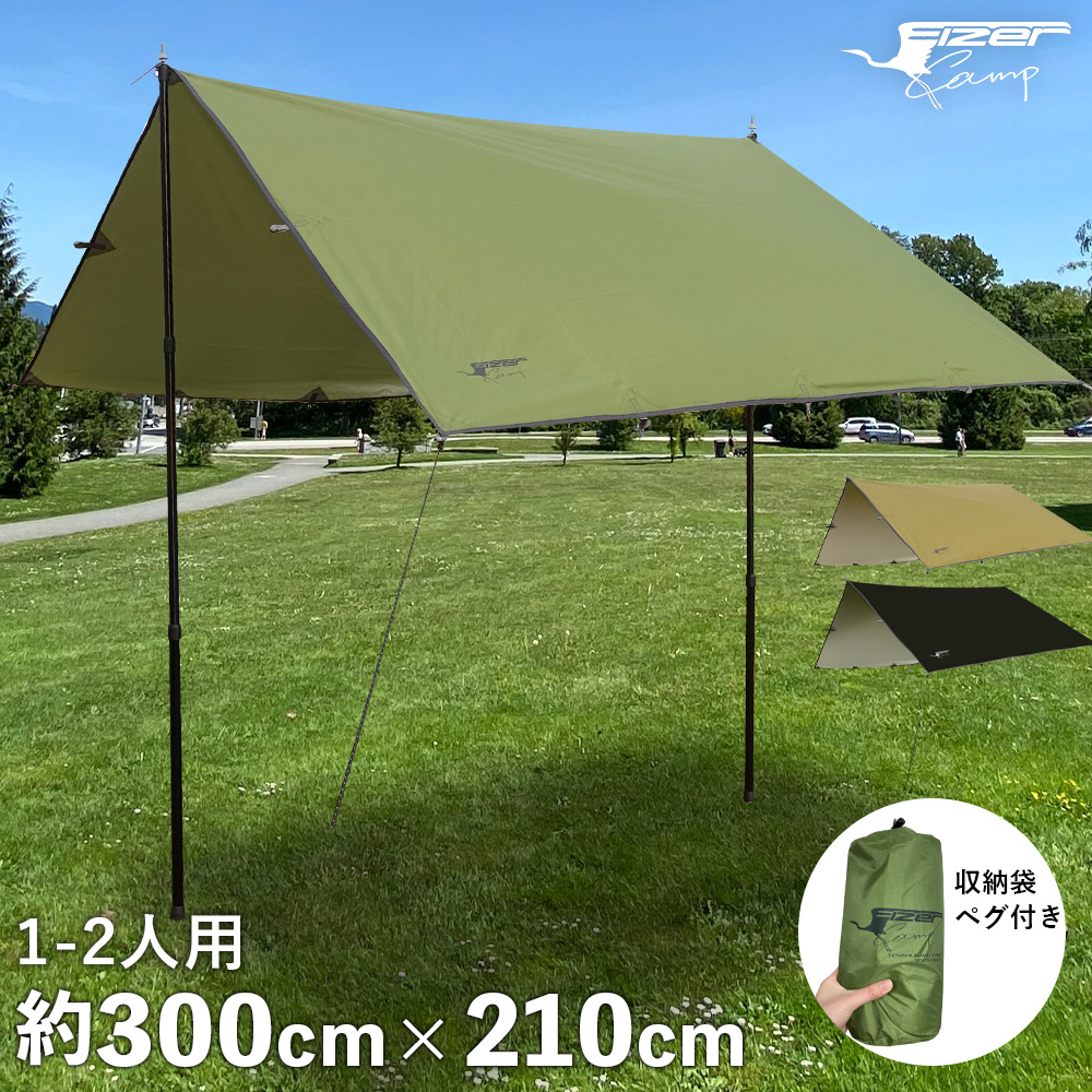 タープ タープテント 1人用 2人用 防水 おしゃれ 3m ソロキャンプ 丈夫 黒 スクエア カーキ 超軽量 ソロ 雨除け コンパクト 収納袋 UV