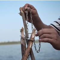 木の枝を3本束ねて自作トライポッドにするステンレス製アタッチメント「トライポッドリング」