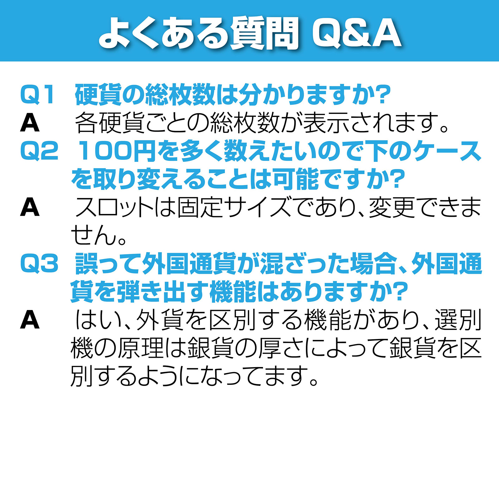■計測可能貨幣:500円玉、100円玉、50円玉、10円玉、5円玉、1円玉硬貨