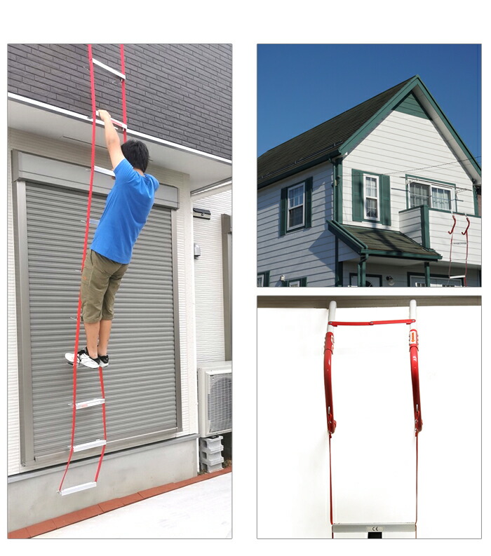 地震対策 ロープ式 はしご型 軽量 簡単取付 折り畳み コンパクト収納の避難はしご 住宅3階用 3階建て 避難梯子 ロープはしご