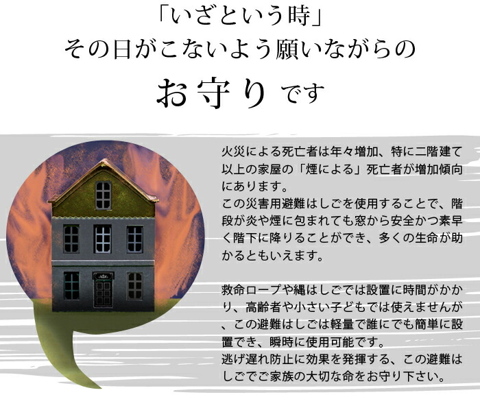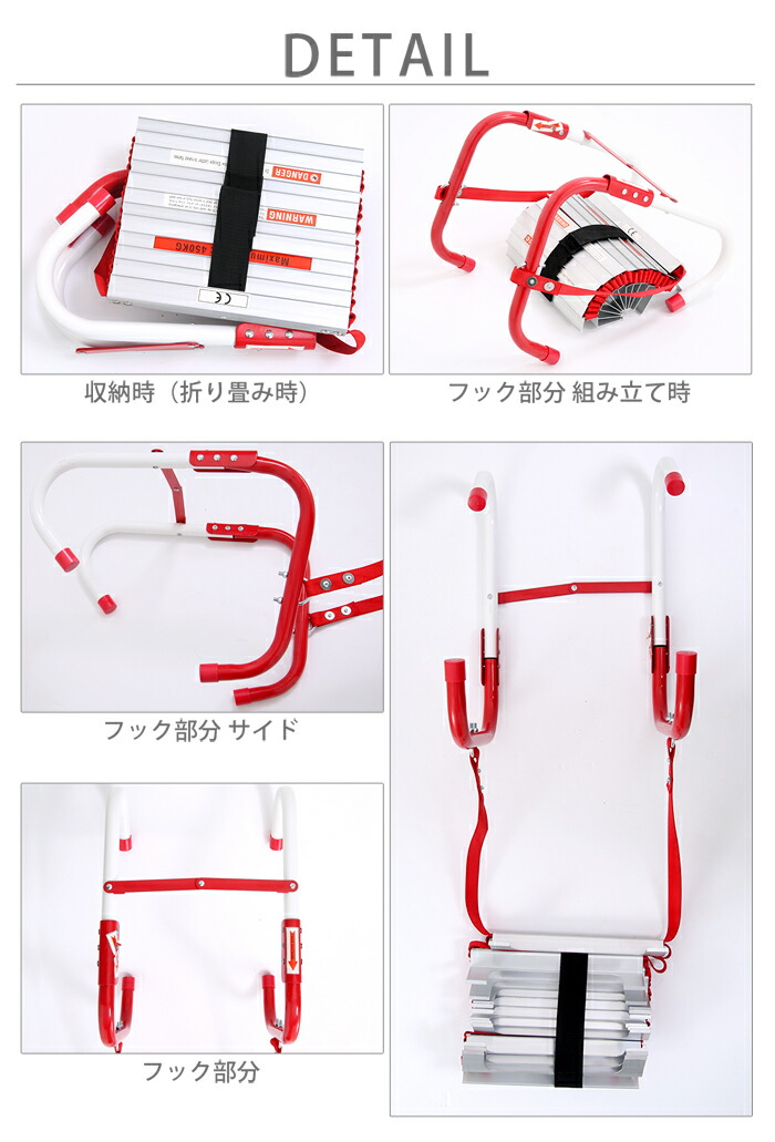 あくまでも一般家庭向けの緊急避難用はしごです。耐荷重・安全性を考慮して設計されており、