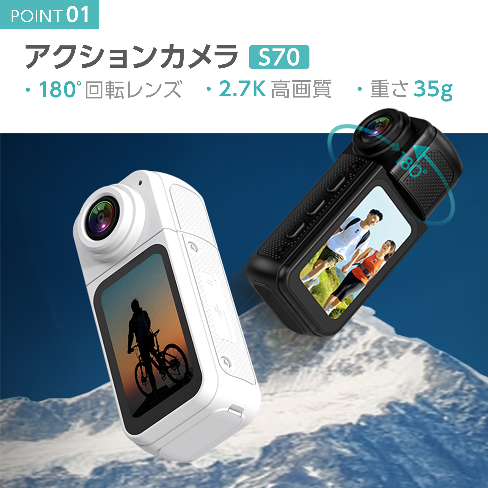 小型アクションカメラ 高画質 超軽量 SDカード32GB付属 180°回転レンズ 超精細ディスプレイ