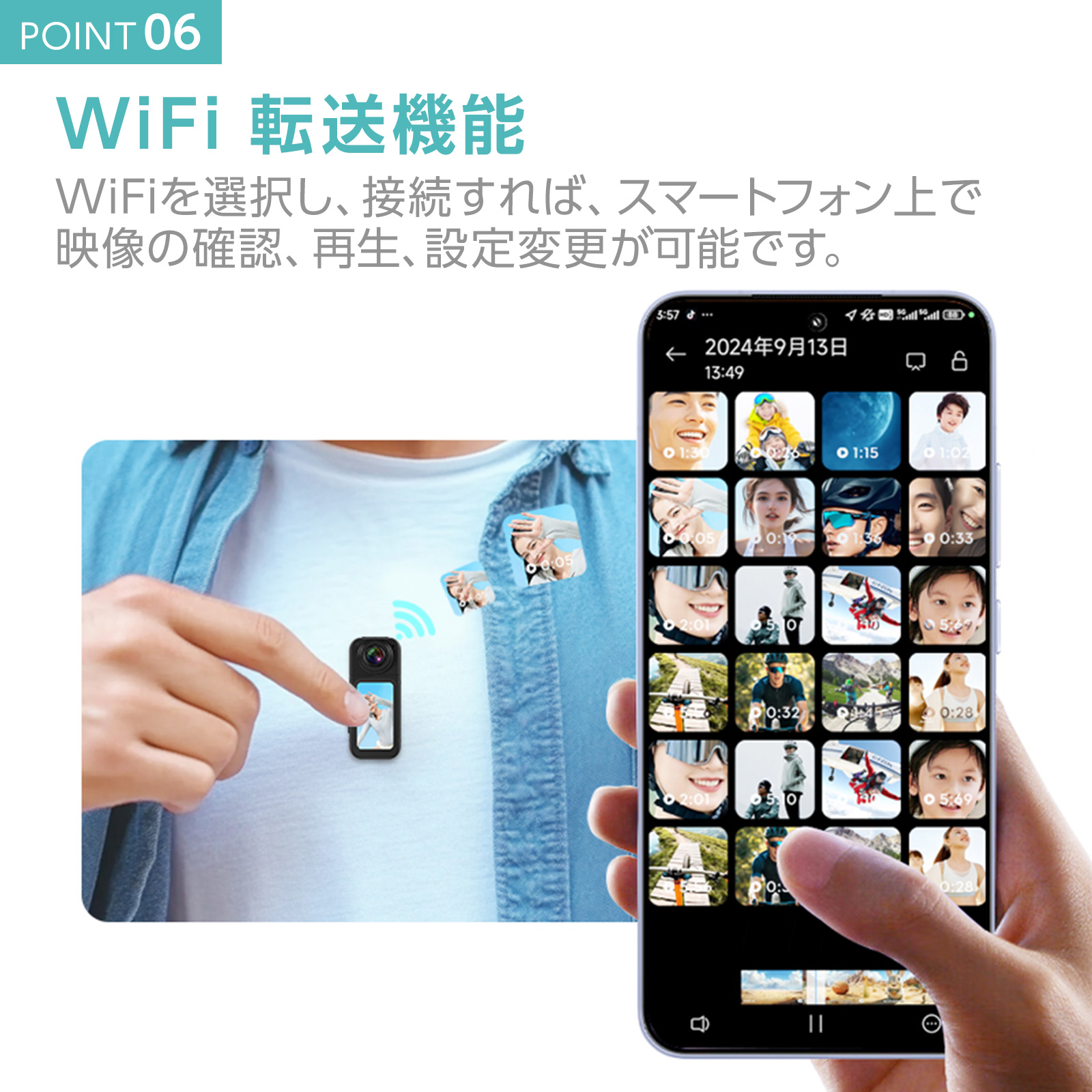 スポーツ、旅行、Vlog、作業記録に対応。