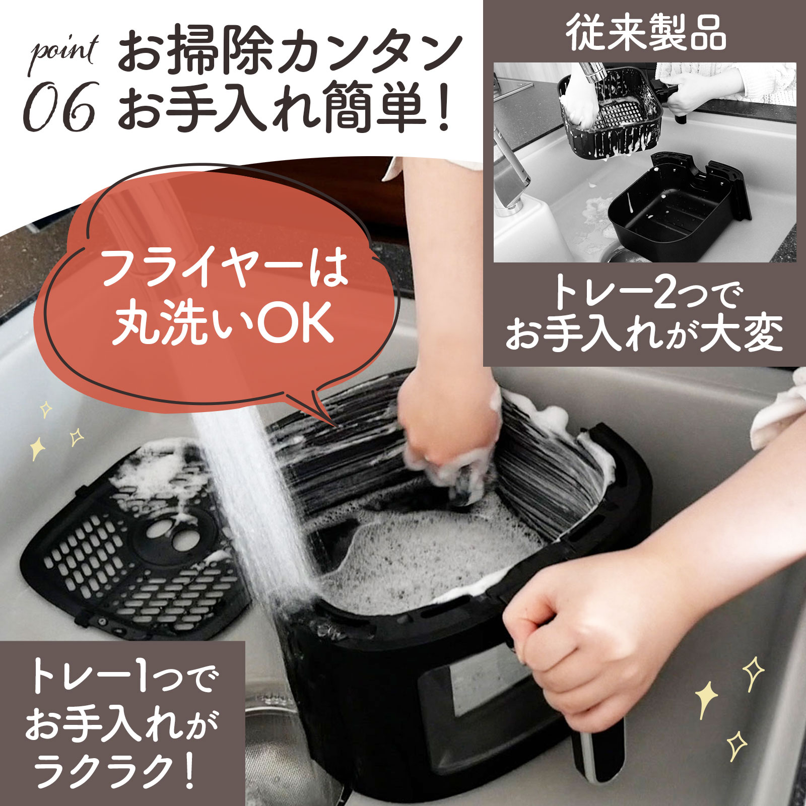 油を使わなくても揚げ物はサクッと軽い仕上がりです。