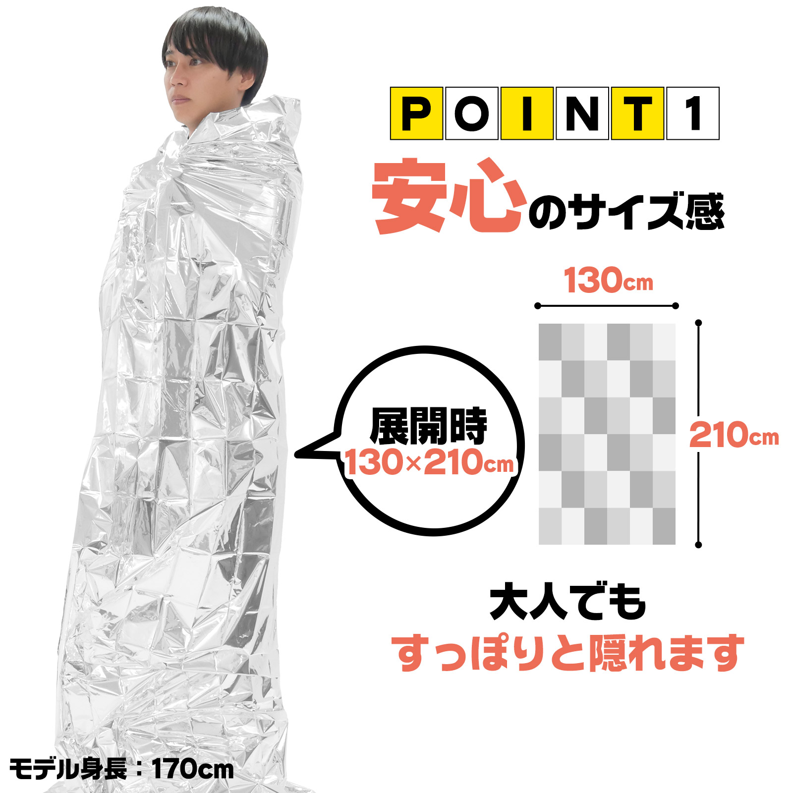 子供から大人まで使える大判サイズのアルミシートです。