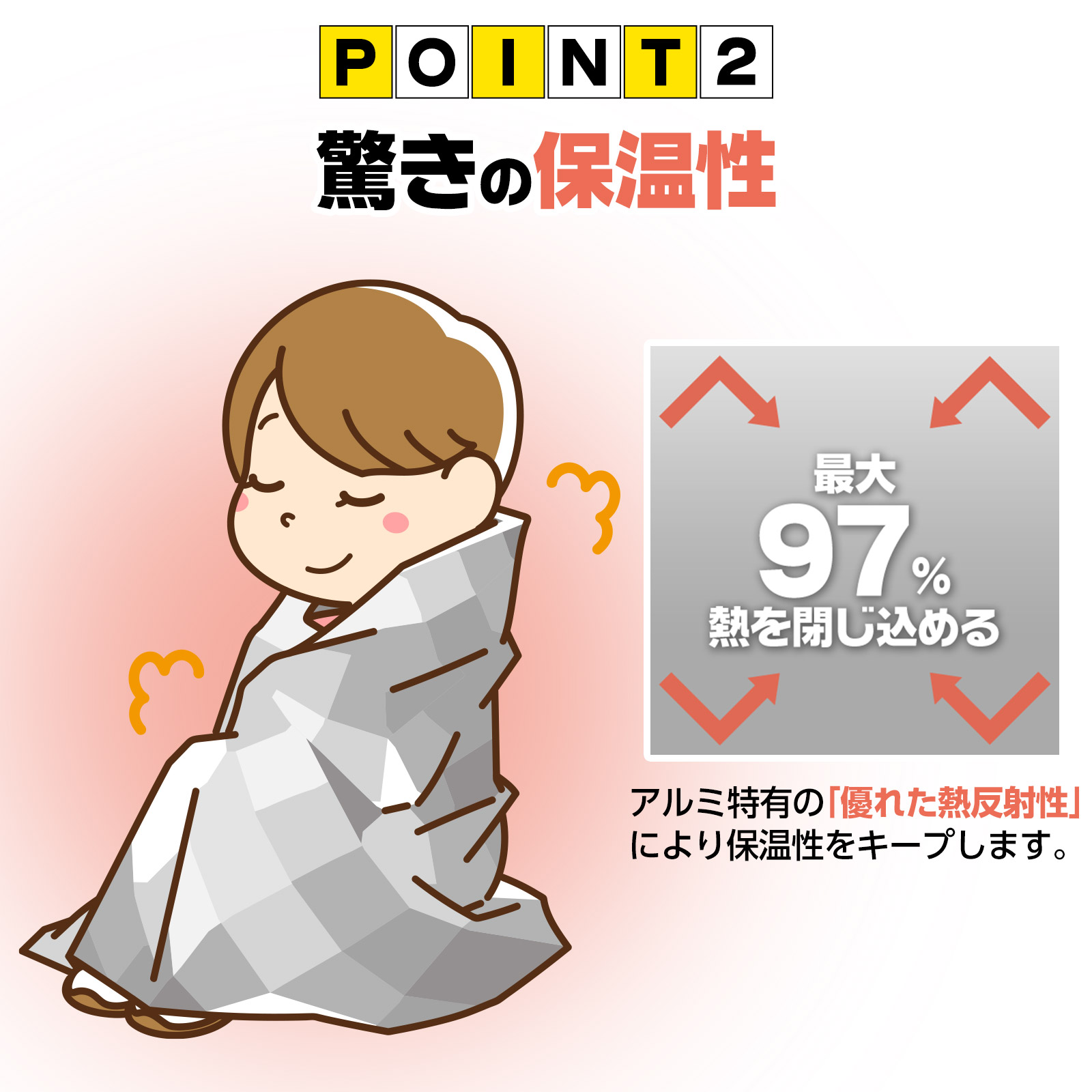 最大約97%の熱を反射する高い保温性。