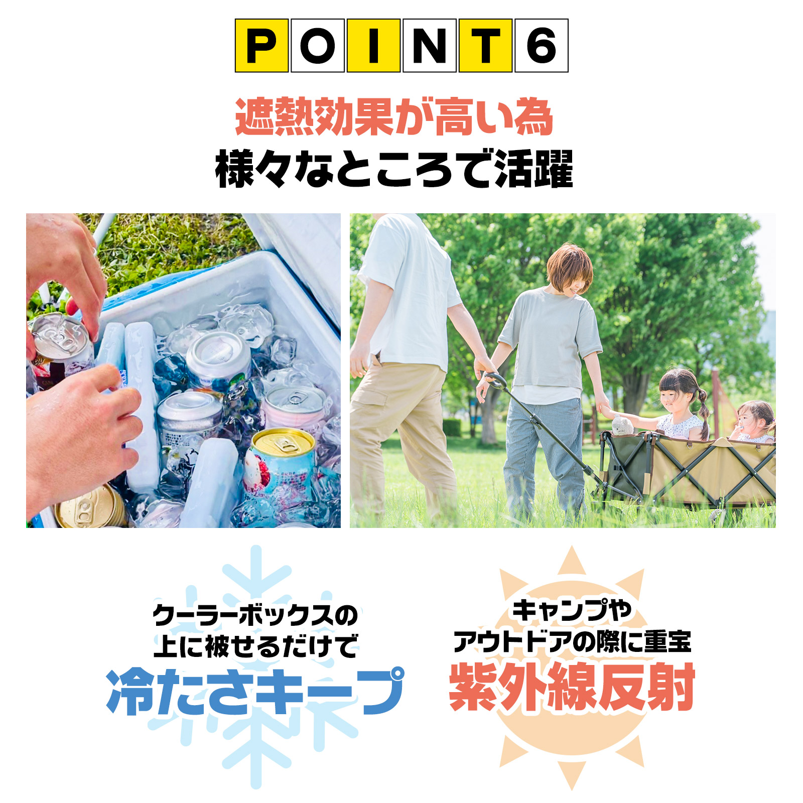 クーラーボックスの保冷補助や紫外線対策にも使えます。