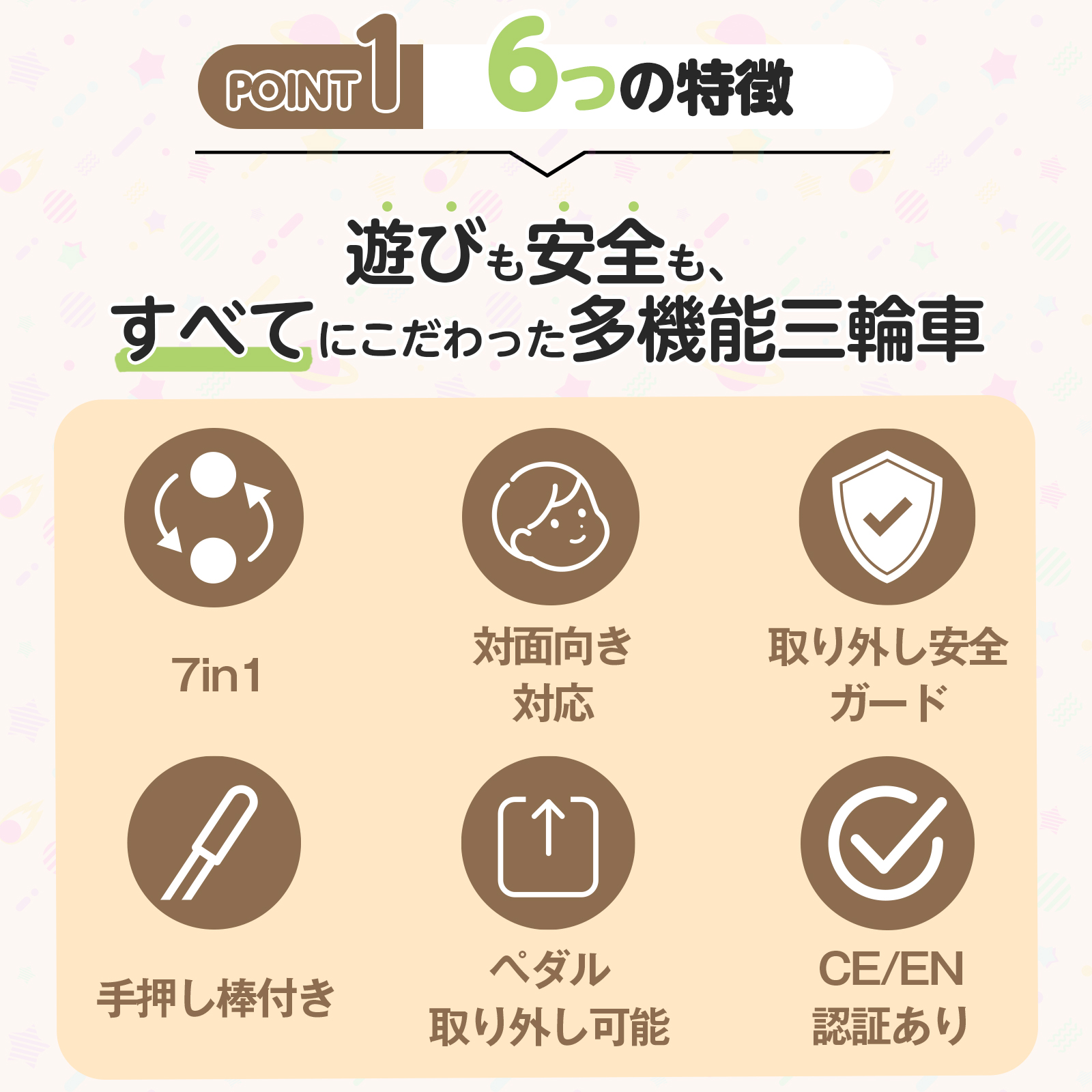 子供用三輪車 7in1 手押し棒付き 三輪車 キッズバイク バランスバイク ランニングバイク キックバイク 自転車 1歳 2歳 3歳 4歳 5歳