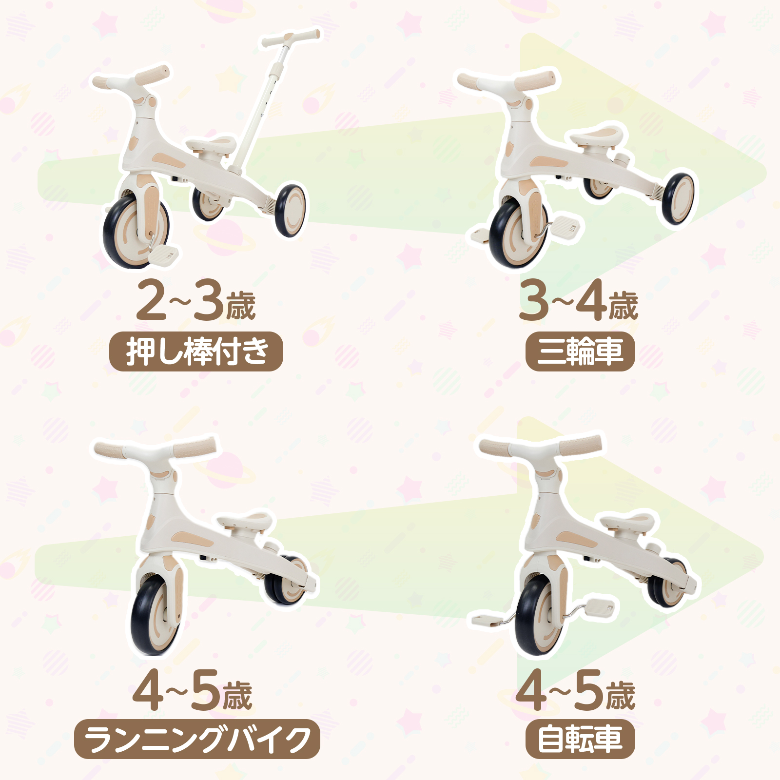 三輪車・ランニングバイク・自転車として、お子さま自身で操作可能。