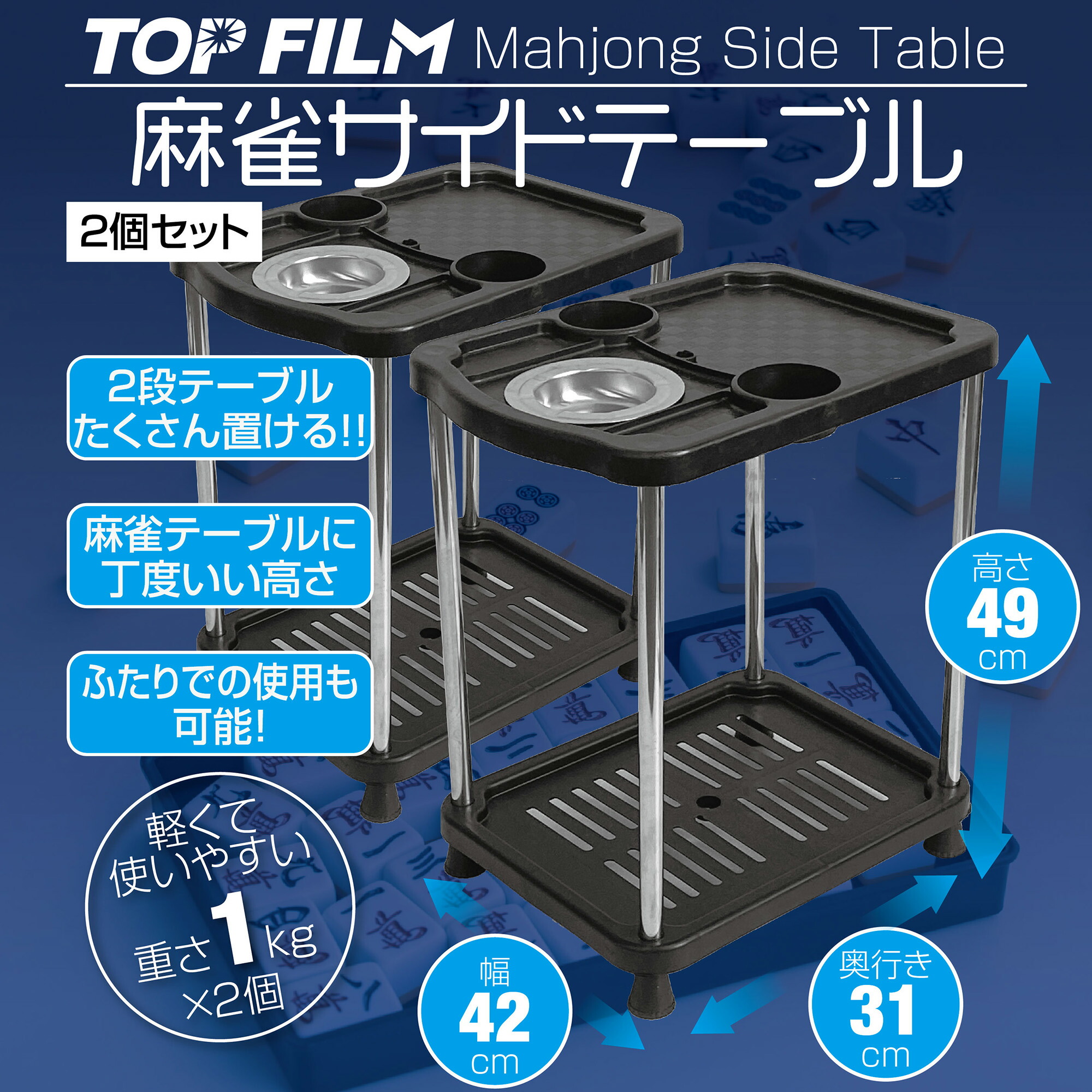 TOP FILM 麻雀サイドテーブル 2個セット 灰皿 ドリンクホルダー アジャスタ―付き