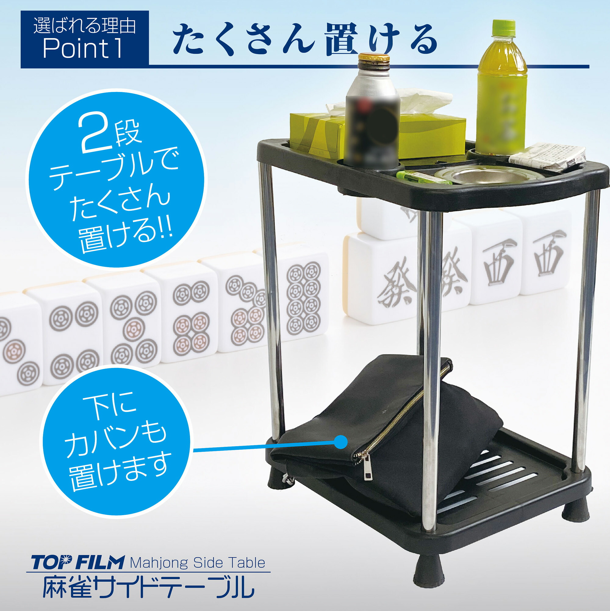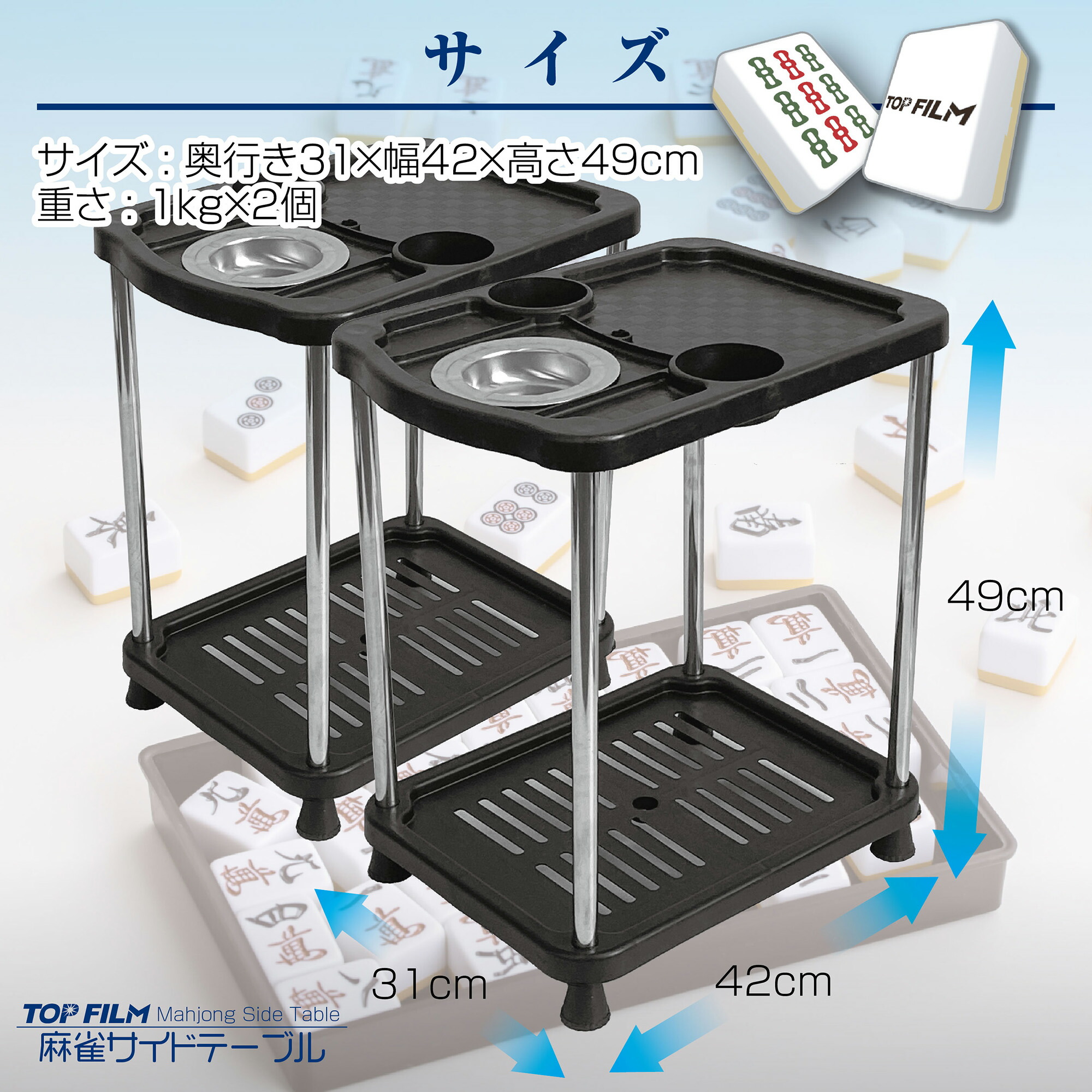 高さ49cm設計で、麻雀卓の横に置くのに最適なサイズ感。