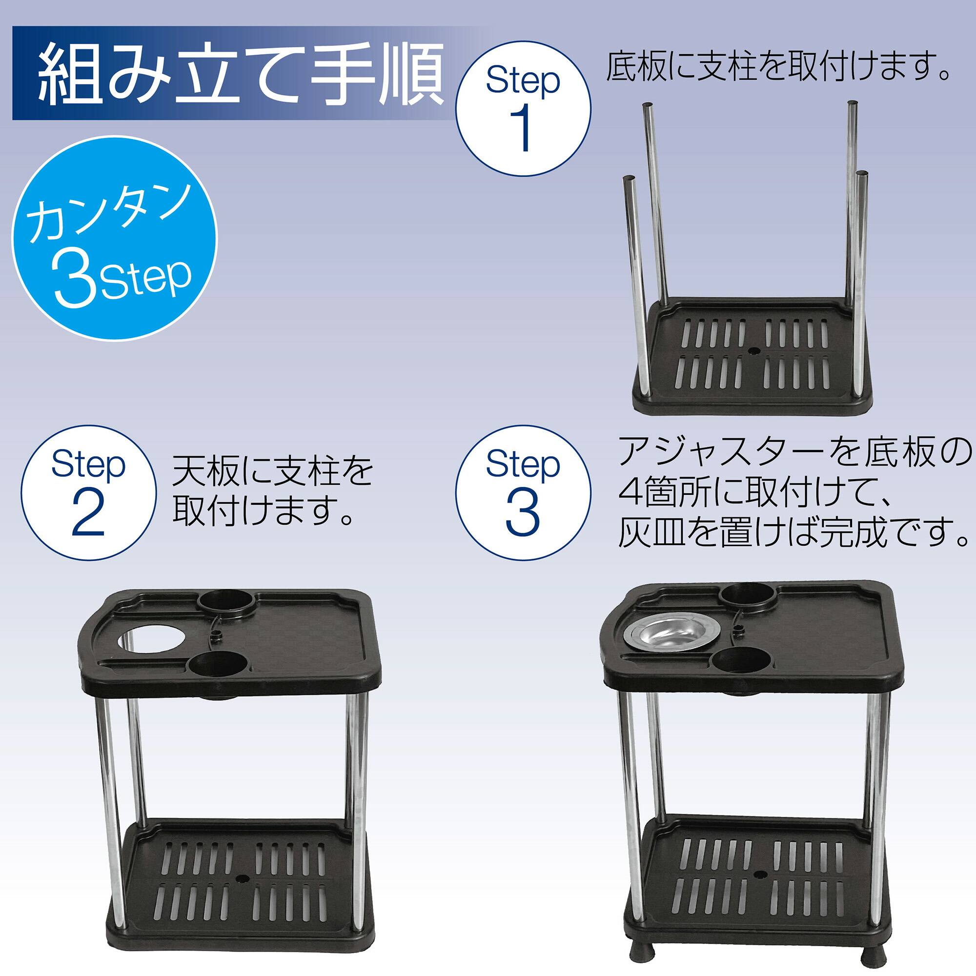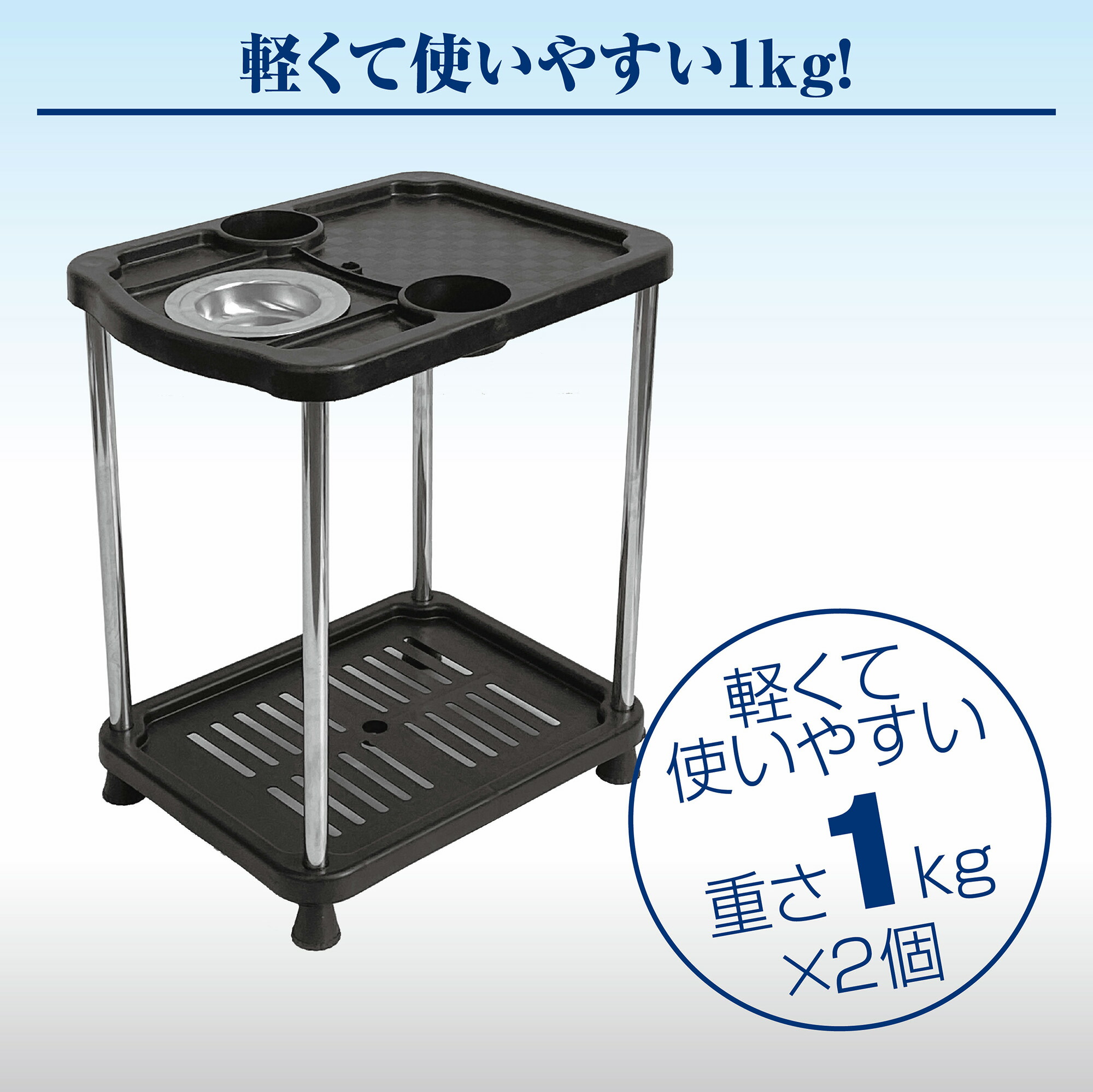 便利な2段式構造で、飲み物・灰皿・スマートフォン・小物類などをまとめて置くことができます。