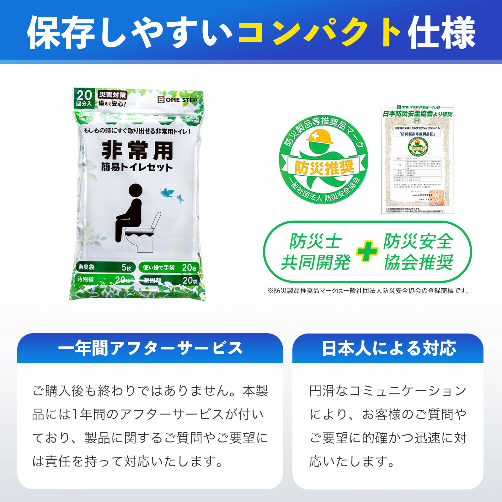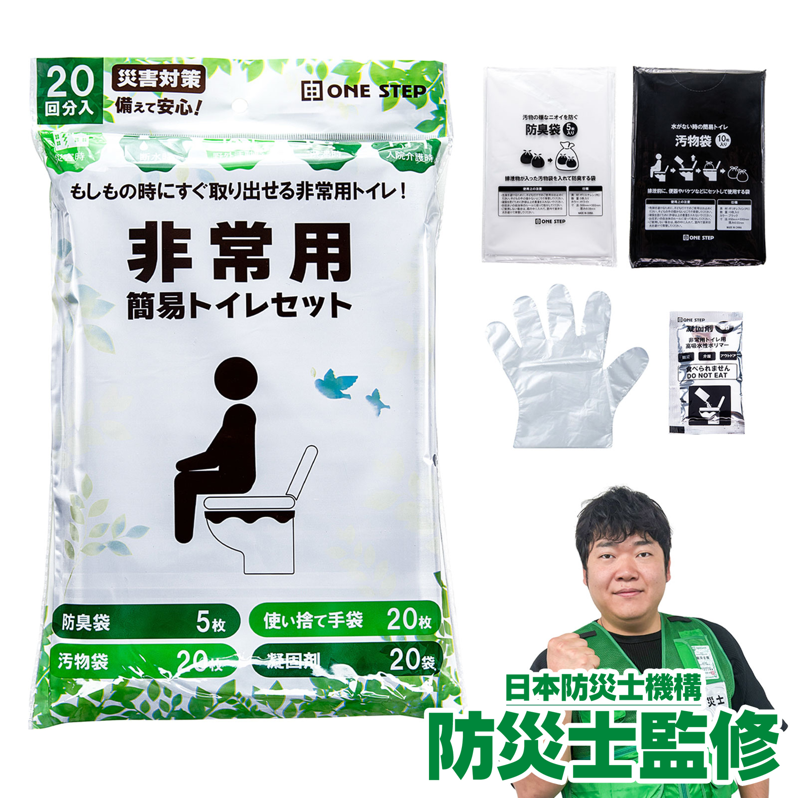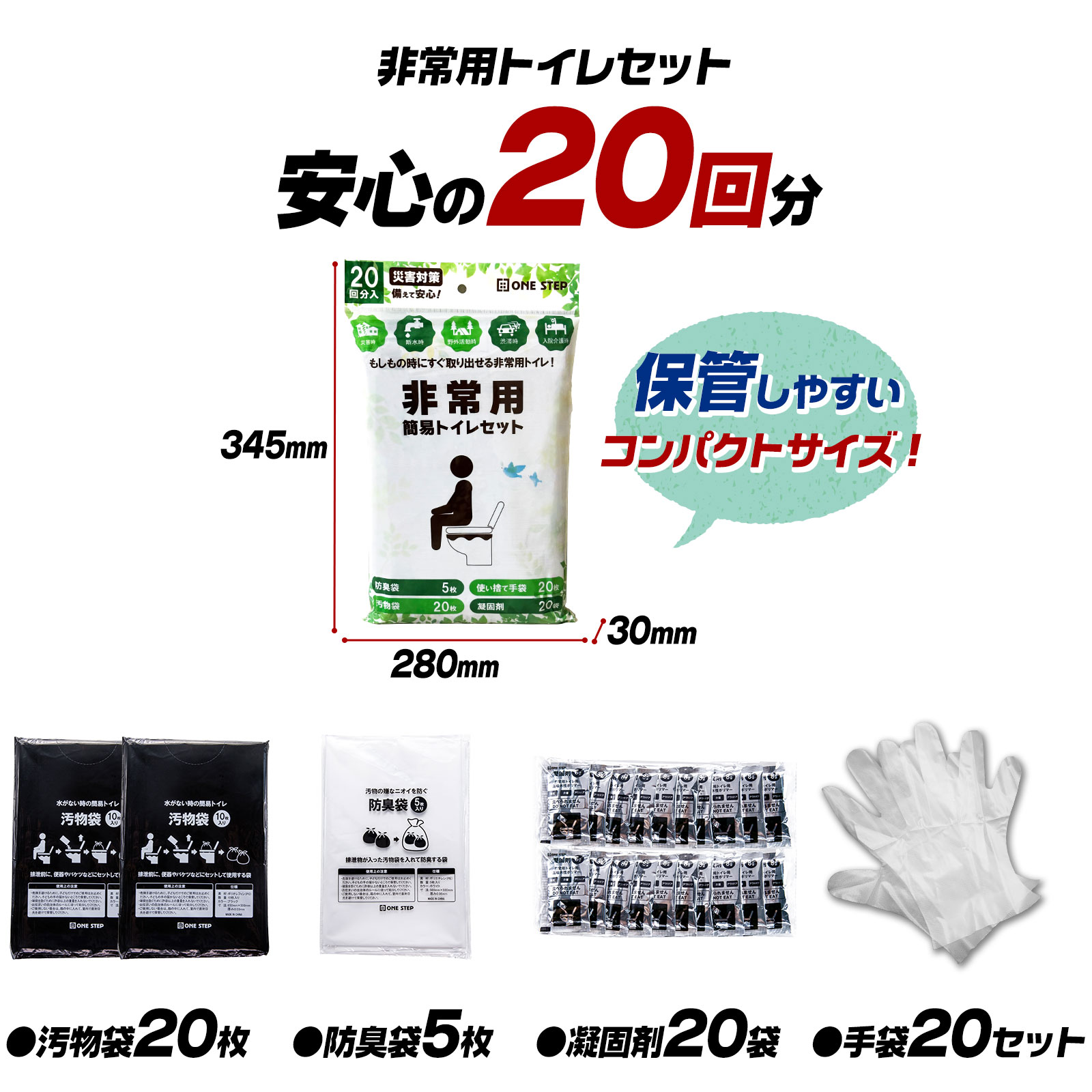 非常用トイレ 防災トイレ 防災 凝固剤 非常用トイレセット 20回 簡易トイレ 災害用 携帯トイレ ONE STEP