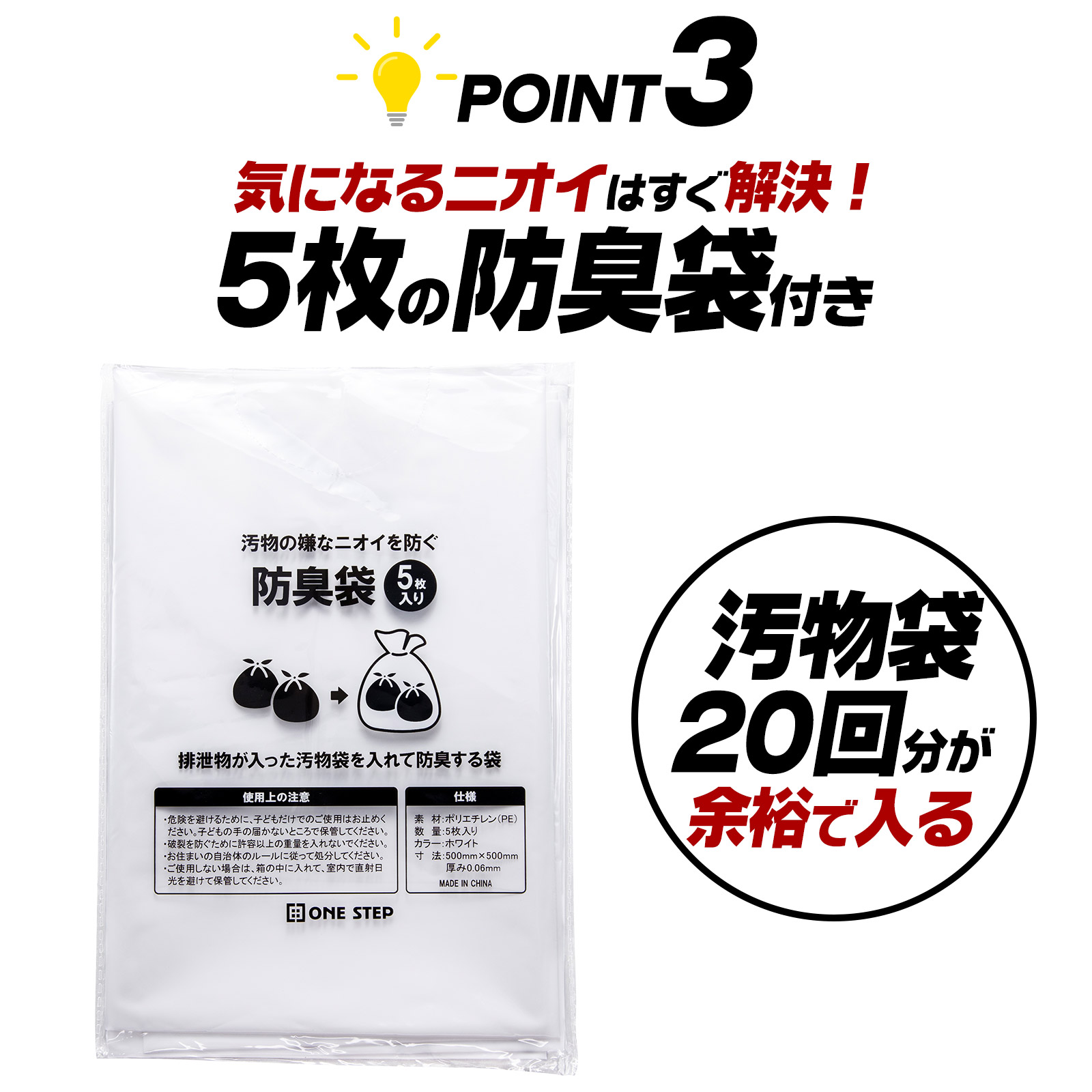 その後、袋を結んで防臭袋に入れ、ルールに従って処理するだけで清潔に使えます。