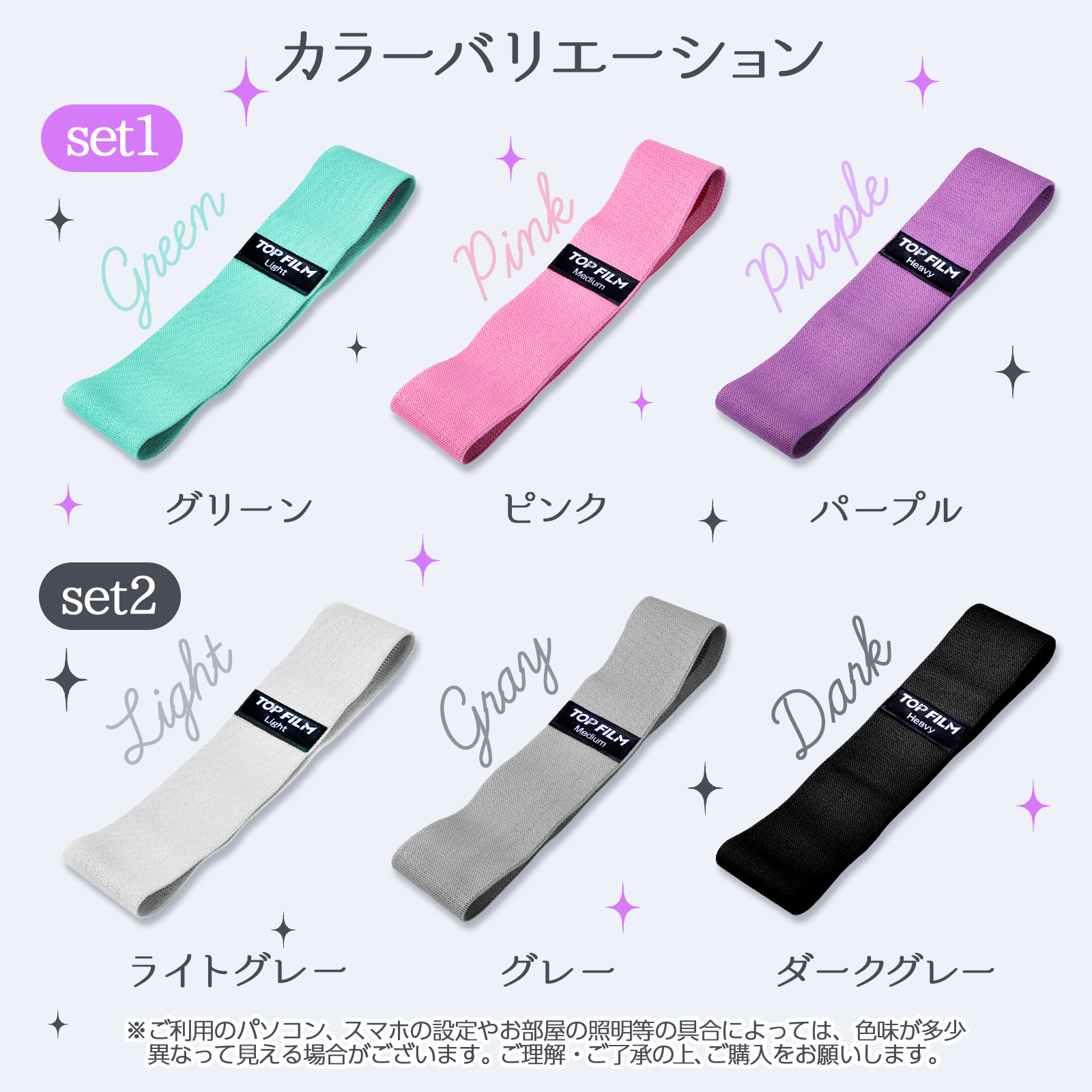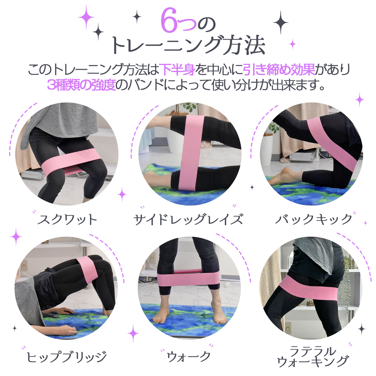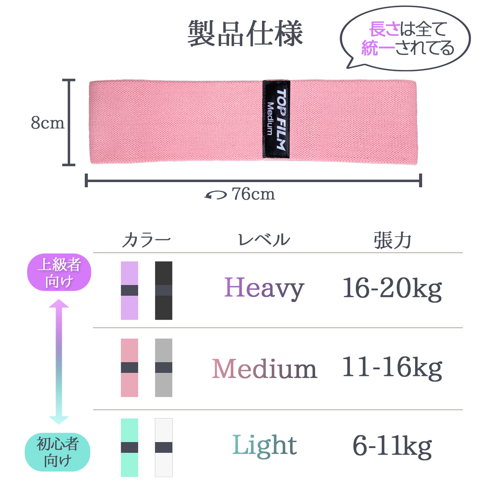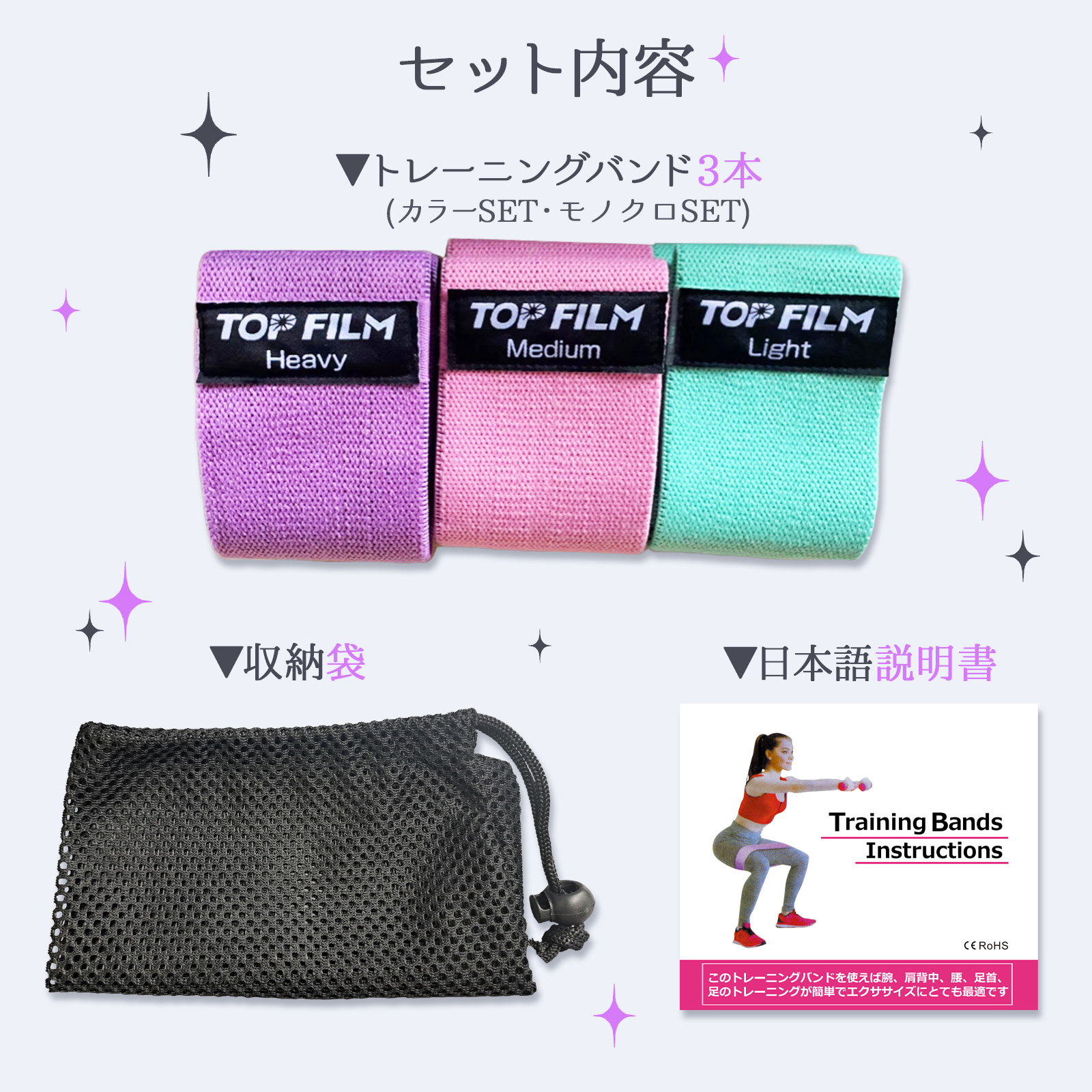 トレーニングバンド エクササイズバンド 強度別 3本セット 収納袋付 ヒップバンド お尻 太もも 下半身 ダイエット 筋トレ TOP FILM