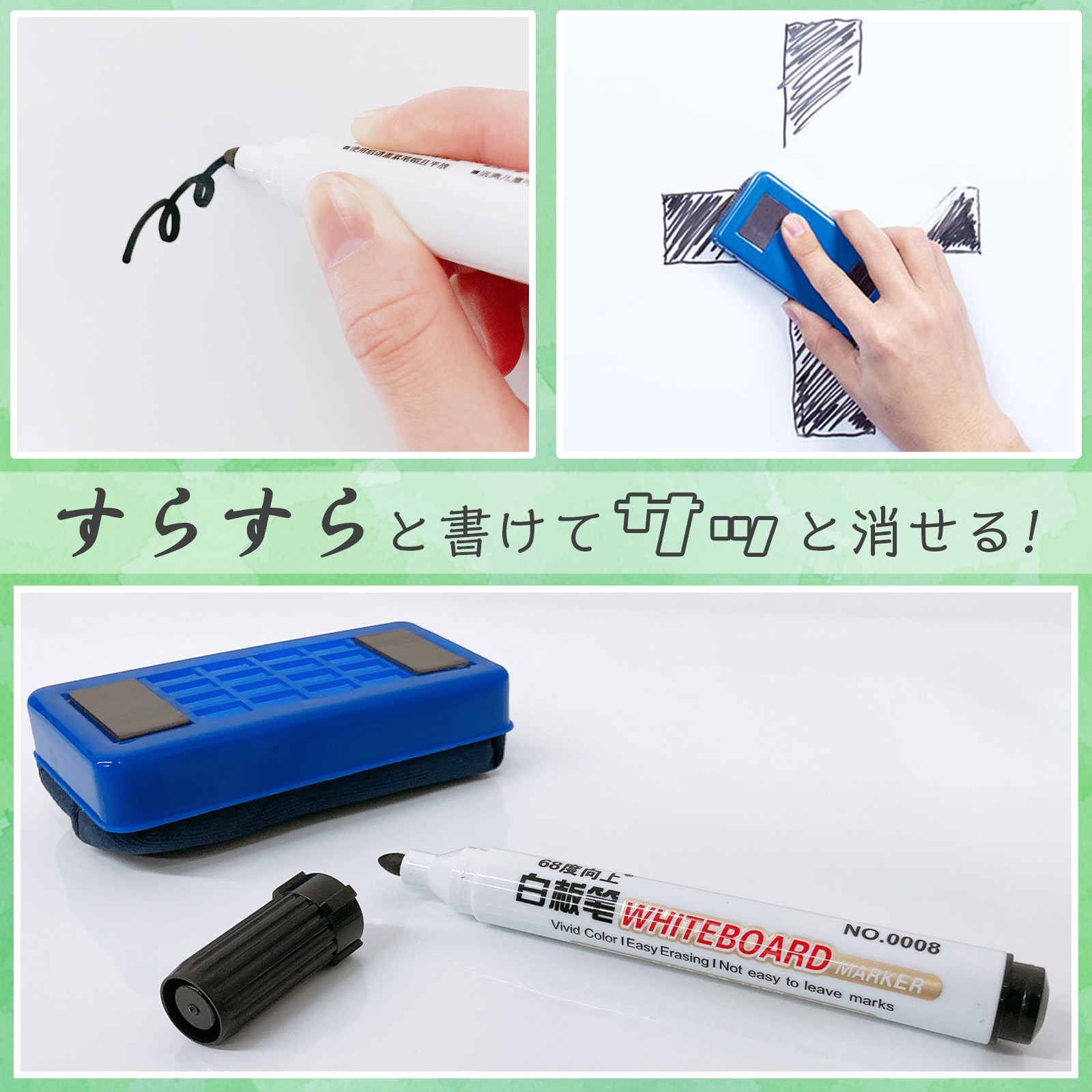 書き心地が良く、時間が経った文字もサッとひと拭きでクリアに消去できます。