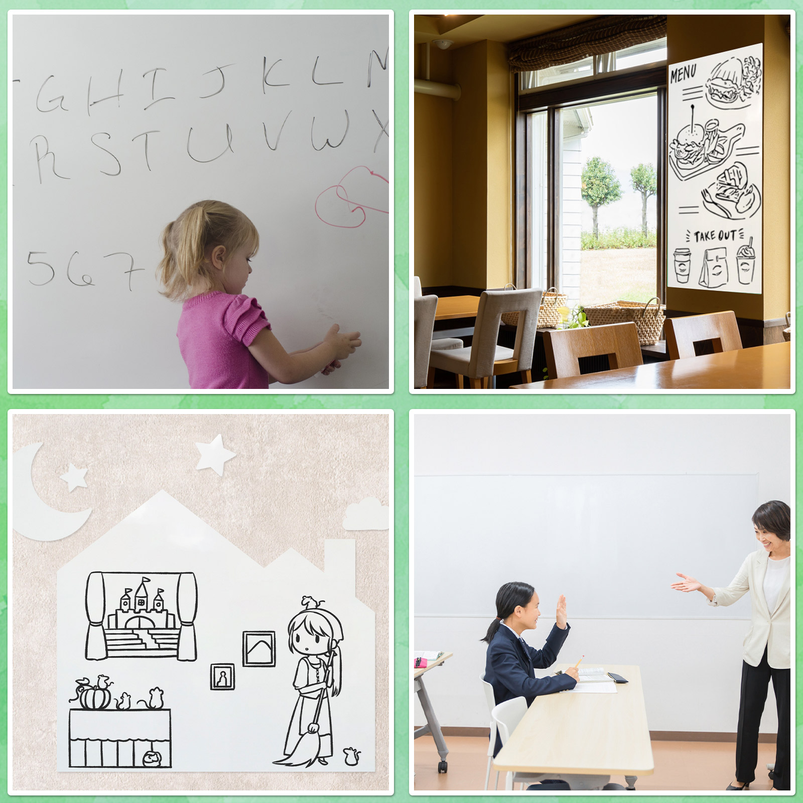 書きやすい 消しやすい お絵かき 落書き用 ボード 会議室 オフィス メモ 店舗 事務所 会社 会議 事務 掲示板 教室 壁 Zoom セミナー