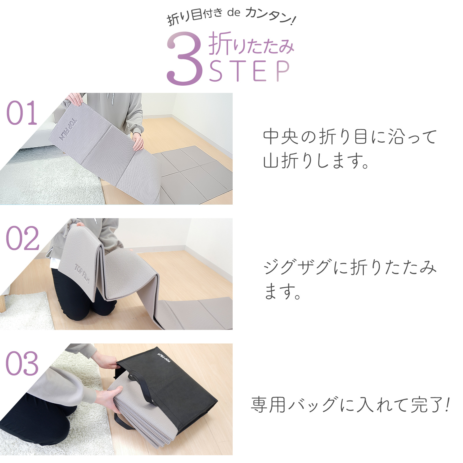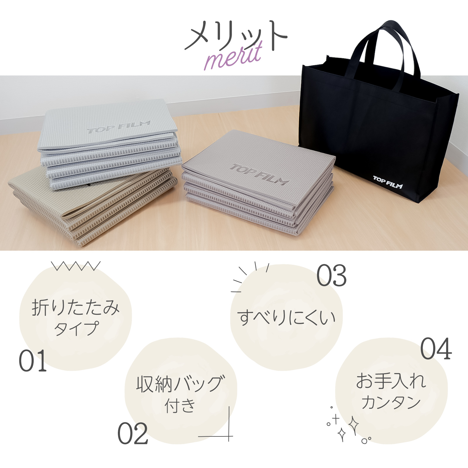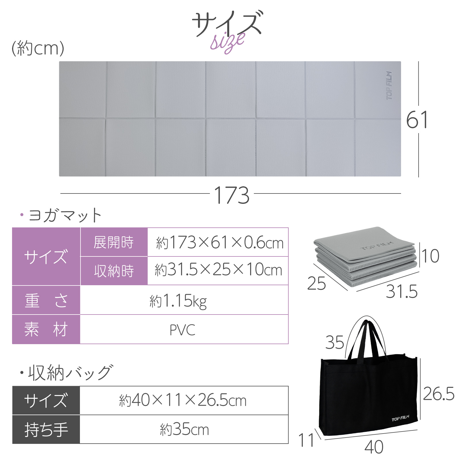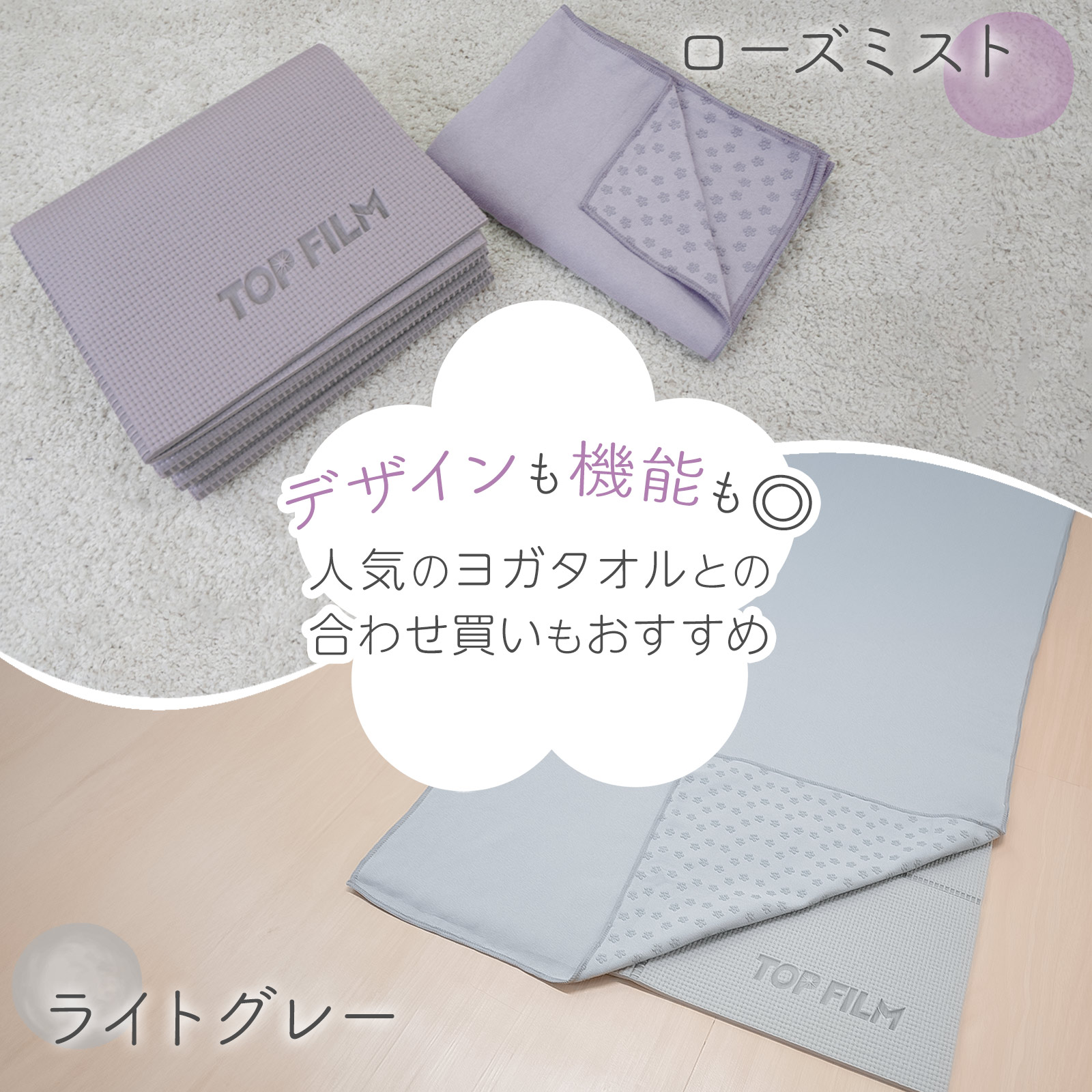 ヨガマット 折りたたみ 6mm 厚手 幅広 収納袋付き 軽量 おしゃれ ヨガ ピラティス トレーニングマット TOP FILM