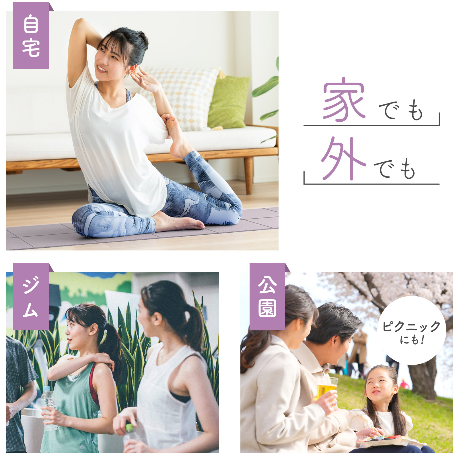 持ち運びに便利な折りたたみ式ヨガマット。