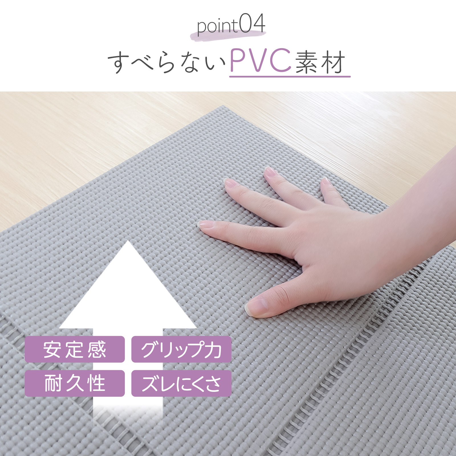 滑りにくいPVC素材を採用し、安定感があり、ヨガやピラティス、ストレッチ、筋トレにも安心して使用可能。