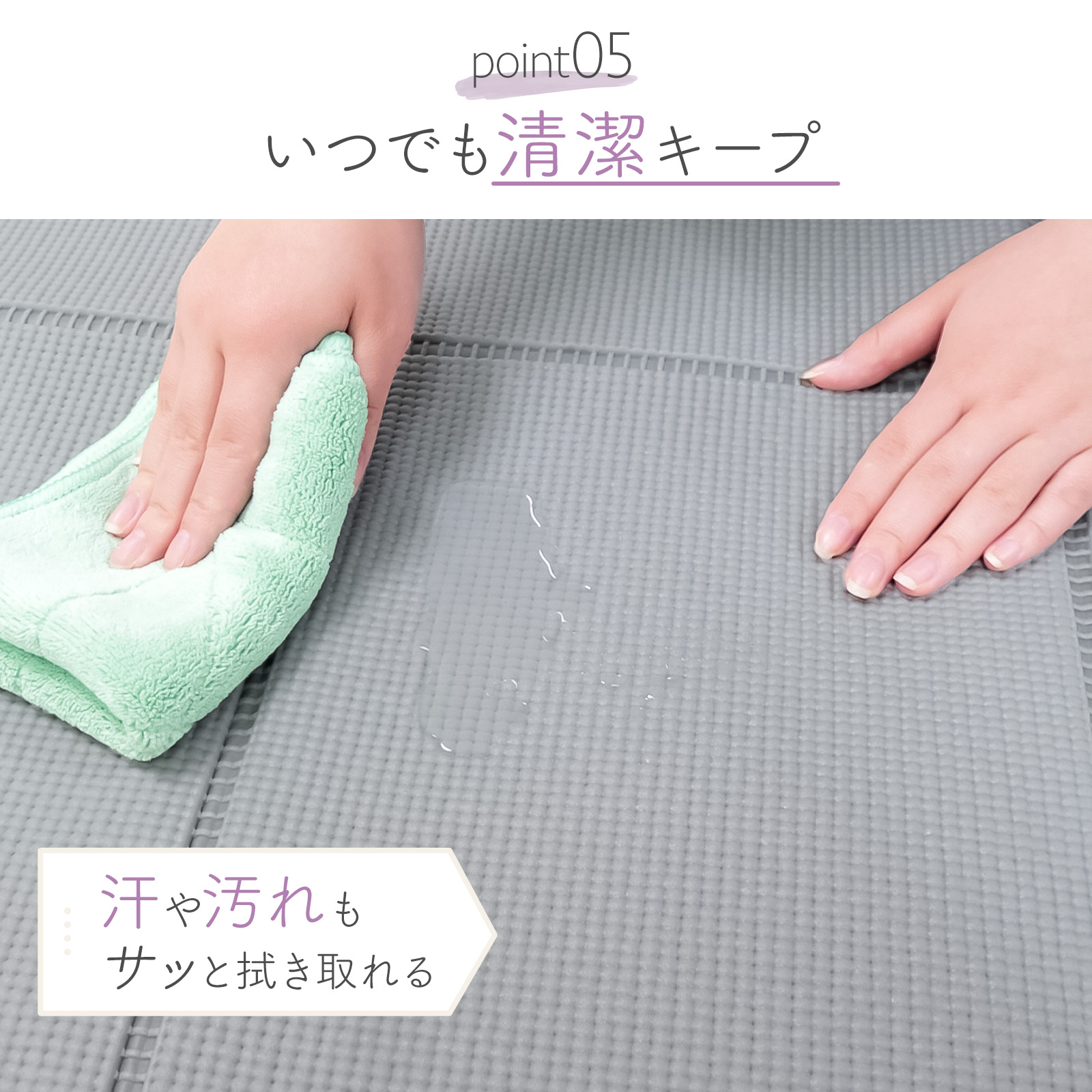 撥水性にも優れ、汗や汚れをさっと拭き取れて清潔に保てます。