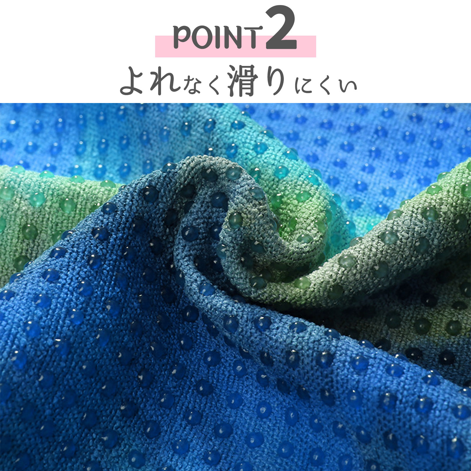 滑り止め付きでズレにくく、ホットヨガやピラティスにぴったりなヨガタオル。