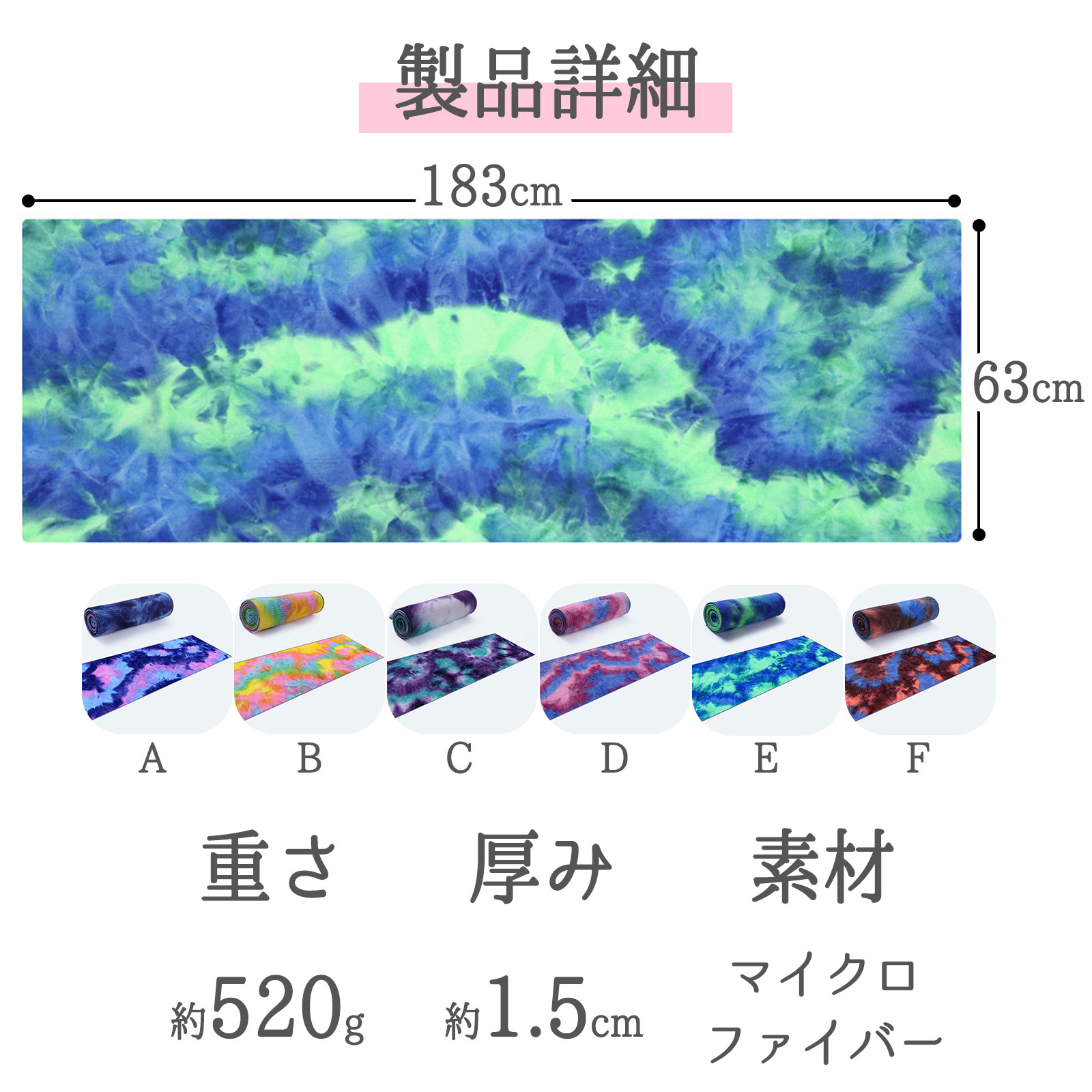 大判サイズ(183×63cm)でヨガマットをしっかり覆い、清潔に使用できます。